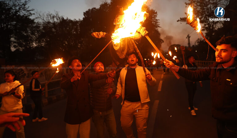 काठमाडौं- दाङको तुल्सीपुर उपमहानगरपालिका –५ को विरेन्द्र चोकमा नेकपा एमालेको चुनाव चिन्ह अङ्कित झण्डा जलाएको