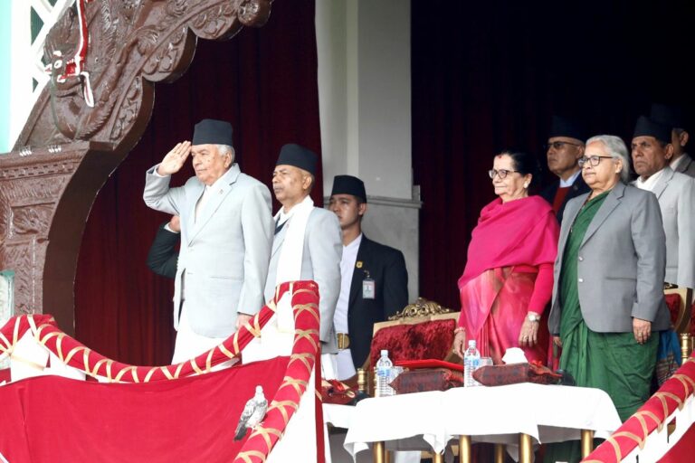 काठमाडौं– राष्ट्रपति रामचन्द्र पौडेल राष्ट्रिय प्रजातन्त्र दिवस– २०८२ को अवसरमा सैनिक मञ्च टुँडिखेलमा आयोजित विशेष