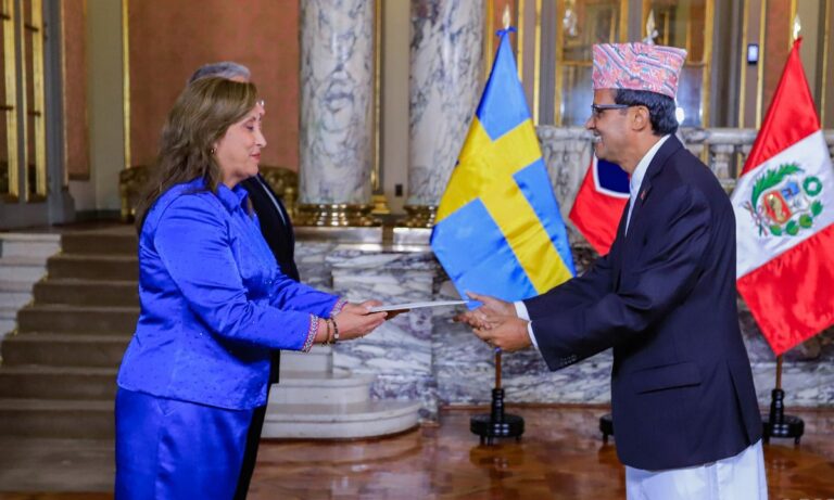 काठमाडौं– ब्राजिलका लागि नेपालका राजदूत निर्मलराज काफ्लेले शुक्रबार (आज) पेरुका राष्ट्रपति दिना एर्सिलिया बोलुआर्टे जेगारासमक्ष