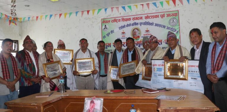 खोटाङ– यहाँस्थित ‘शुभशेर राई स्मृति प्रतिष्ठान’ले जिल्लाको शैक्षिक उन्नयनमा योगदान गरेका दुई जना शिक्षकलाई सम्मान