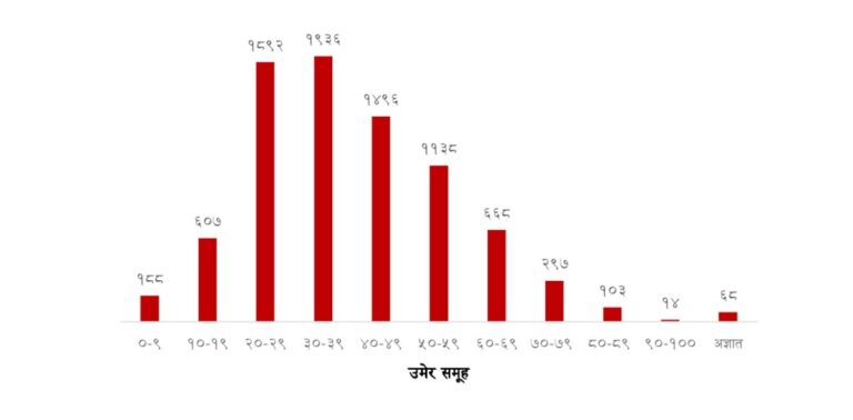 काठमाडौँ– पछिल्लो २४ घण्टामा सबैभन्दा धेरै ३० देखि ३९ वर्ष उमेर समूहका व्यक्तिहरुमा कोरोना भाइरसको
