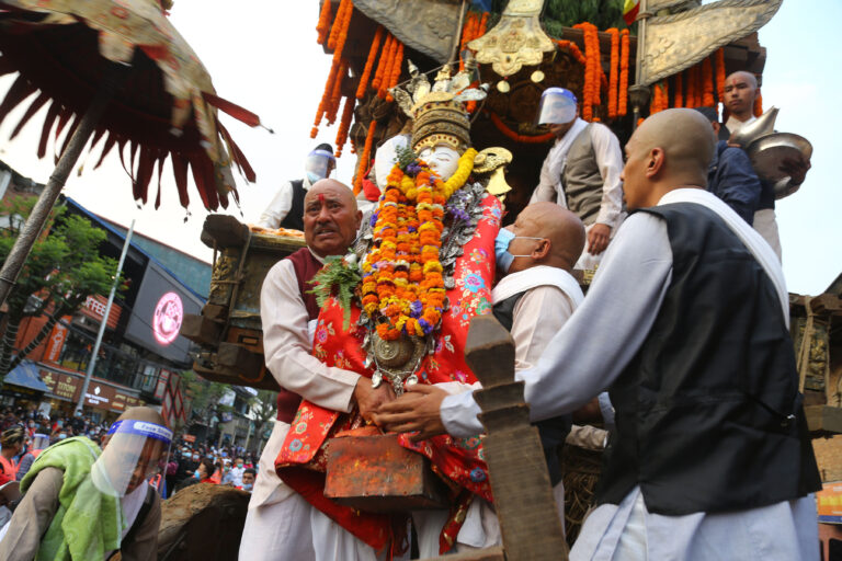 काठमाडौँ– वर्षा र सहकालका देवता सेतो मच्छेन्द्रनाथको रथयात्रा असनबाट हनुमानढोका पुर्याइएको छ । प्रत्येक वर्ष