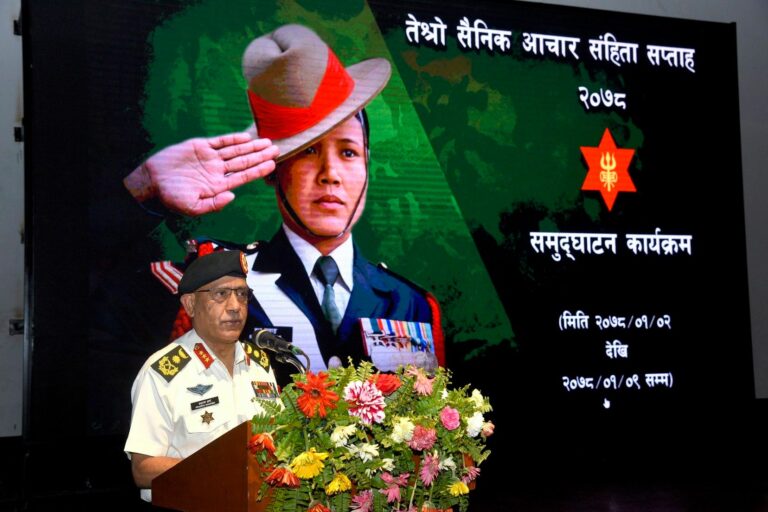 काठमाडाैँ– तेस्रो सैनिक आचार संहिता सप्ताह आजबाट शुरु भएको छ । सैनिक मुख्यालयमा आजबाट शुरु