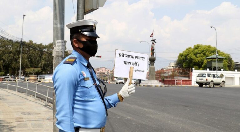 काठमाडौँ – ट्राफिक प्रहरीले विश्वमा फैलिँदै गएको दोस्रो चरणको कोभिड–१९ सङ्क्रमणलाई ध्यानमा राखेर सचेतना अभियान