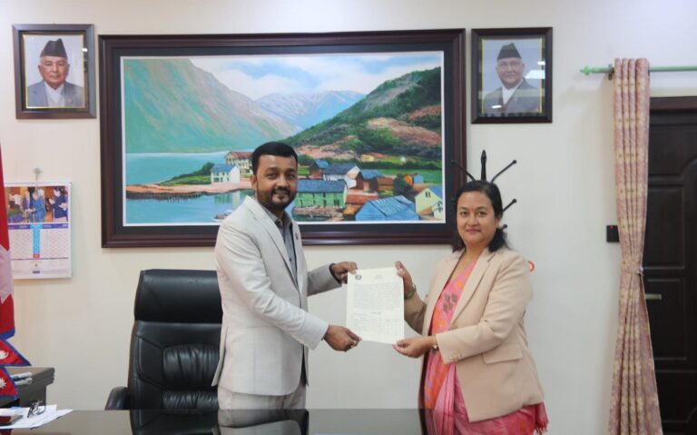 काठमाडौं– खानेपानीमन्त्री प्रदीप यादव र सचिव प्रमिलादेवी शाक्य बज्राचार्यबीच आज आर्थिक वर्ष २०८२-८३ का लागि