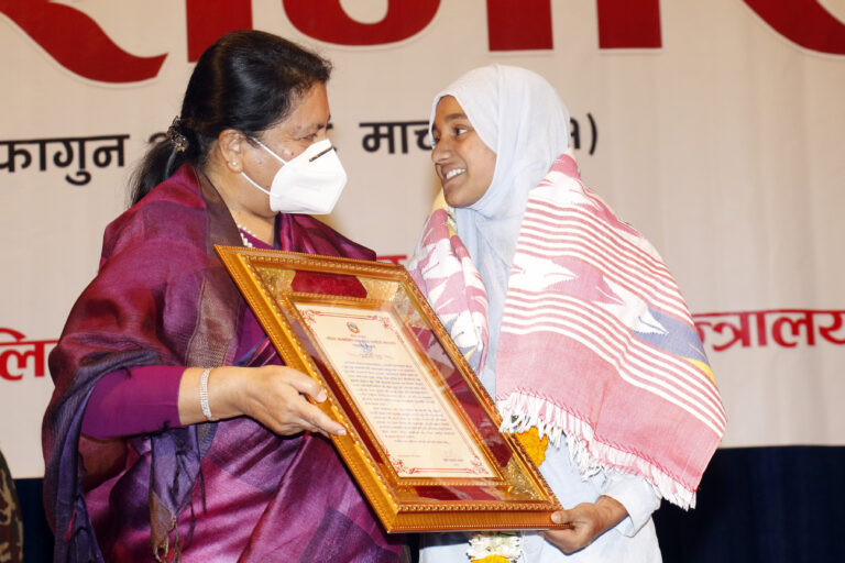 काठमाडौँ– राष्ट्रपति विद्यादेवी भण्डारीले सभ्य र लैङ्गिक समानतायुक्त समाज निर्माणका लागि विशेष पहलका साथ अग्रसर