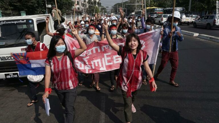 याङ्गुन– म्यान्मारको सेनाले गत सोमबार गरेको ‘कू’को विरोधमा आइतबार पनि हजारौँ मानिसहरू सडकमा उत्रिएका छन्
