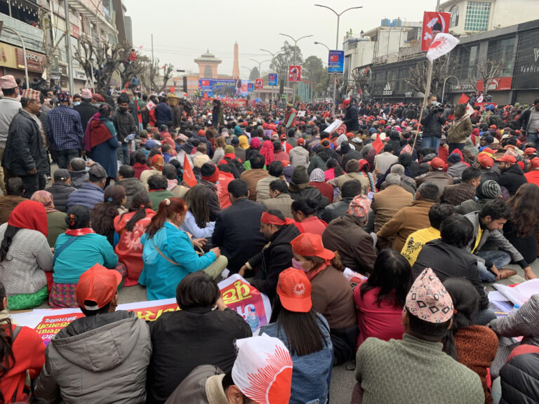 काठमाडौँ– सत्तारुढ नेपाल कम्युनिष्ट पार्टी (नेकपा)ले आज काठमाडौँमा जनसभा आयोजना गरी ताजा जनादेशका लागि निर्वाचनको