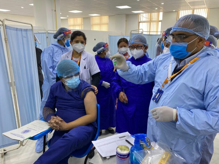 ललितपुर– किष्ट मेडिकल कलेज तथा शिक्षण अस्पतालको अगुवाइमा ललितपुरको दक्षिणी भेगमा कार्यरत स्वास्थ्यकर्मीलाई कोरोनाविरूद्धको खोप