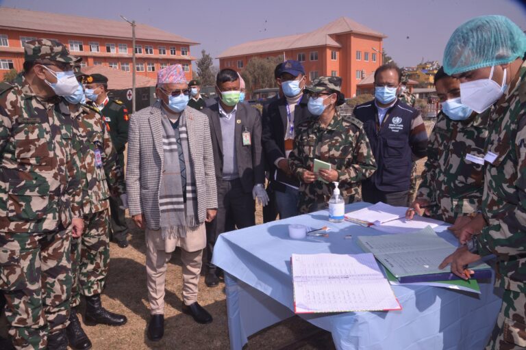 प्रधानमन्त्री ओलीद्वारा छाउनीस्थित कोभिड–१९ खोप केन्द्रको अवलोकन