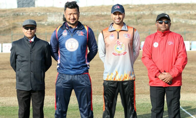 काठमाडौँ- प्रधानमन्त्री कप राष्ट्रिय एकदिवसीय क्रिकेट प्रतियोगिताको पहिलो सेमिफाइनलमा नेपाल पुलिस क्लबले टस जितेर फिल्डिङ