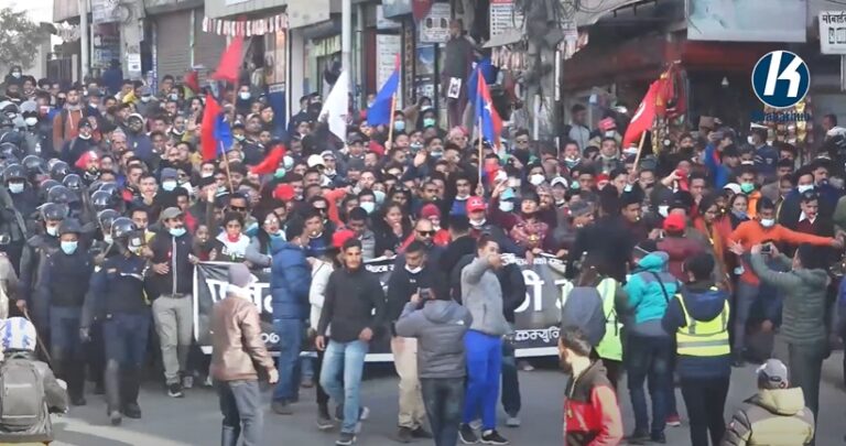 काठमाडौँ– प्रतिनिधिसभा विघटनको विरोध गर्दै नेपाल कम्युनिस्ट पार्टी (नेकपा) दाहाल-नेपाल समूह निकट युवा संगठनले काठमाडौंमा
