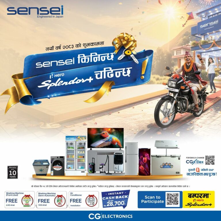 काठमाडौं– नयाँ वर्ष २०८३ को अवसर पारेर सेन्सई ब्रान्डले ‘सेन्सेइ किनिन्छ, हिरो स्प्लेन्डर+ चढिन्छ’ उपभोक्ता