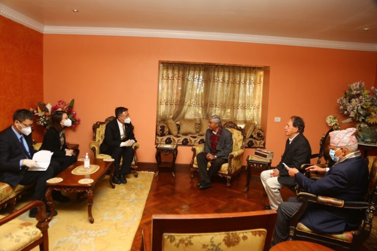 काठमाडौँ– नेपाल भ्रमणमा रहेको चिनियाँ उपमन्त्रीको टोलीले नेपाली कांग्रेसका सभापति शेरबहादुर देउवालाई भेटेको छ ।
