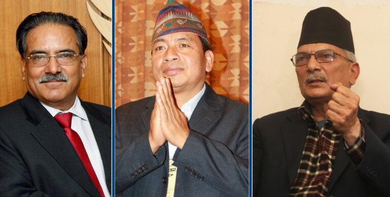 काठमाडौँ– उपराष्ट्रपति नन्दबहादुर पुनसँग नेपाल कम्युनिस्ट पार्टी (नेकपा) दाहाल-नेपाल समूहका अध्यक्ष पुष्पकमल दाहाल ‘प्रचण्ड’ र