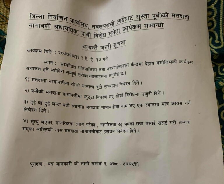 नवलपुर– सरकारले आगामी बैशाख १७ र २७ गतेका लागि चुनाव तय गरेपछि नवलपरासीपूर्वमा निर्वाचन कार्यालयले
