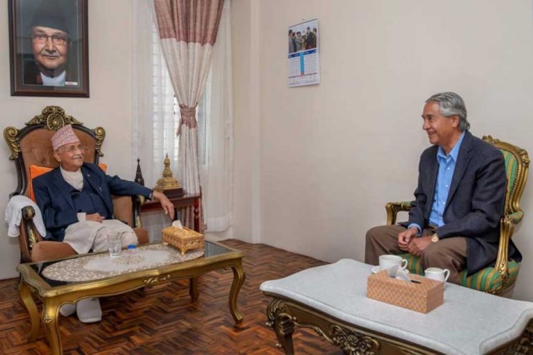 काठमाडौं – प्रधानमन्त्री केपी शर्मा ओली र कांग्रेस सभापति तथा मुख्य विपक्षी दलका नेता शेरबहादुर
