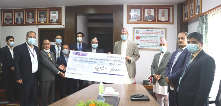 काठमाडौं- नेपाल बैंकले सरकारलाई ३ करोड ४६ लाख रुपैयाँ सहयोग गरेको छ । बैंकले सरकारले