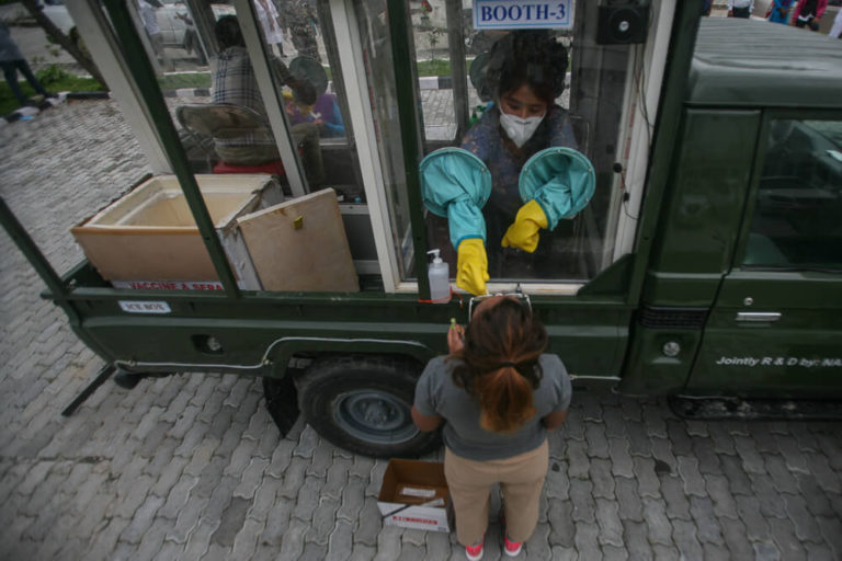 काठमाडौं- कोभिड–१९ संकट व्यवस्थापन सञ्चालन केन्द्रले स्वाब संकलन गर्न प्रयोगमा ल्याएको ‘मोबाइल स्वाब कलेक्शन भेहिकल’