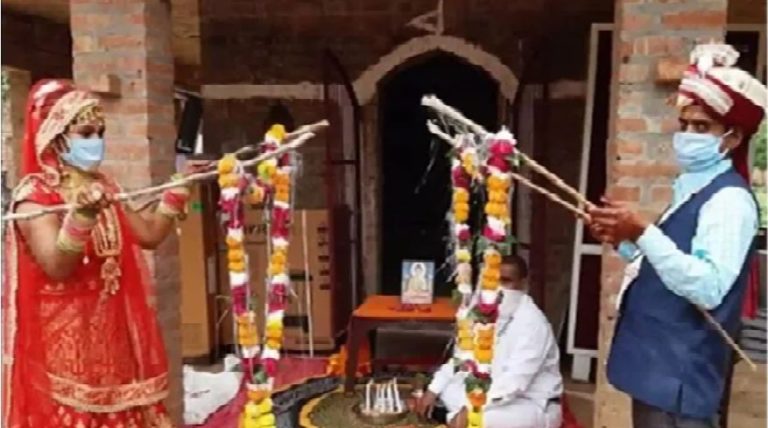 कोरोनाको त्रासबीच विवाह, बर-बधुले लगाए लौराले माला !