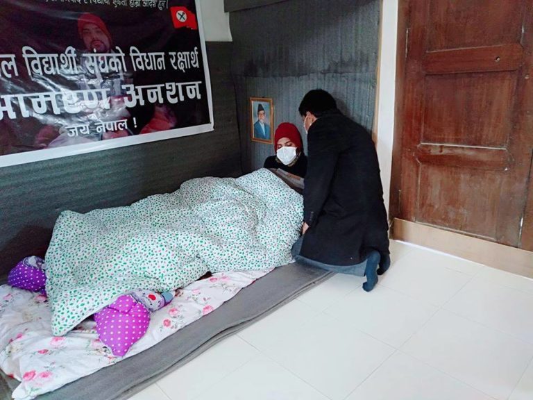 काठमाडौं– कांग्रेस पार्टी कार्यालय सानेपामा पाँचदिन देखि आमरण अनशनमा बसेका विद्यार्थी नेता नवराज त्रिपाठिले अनसन