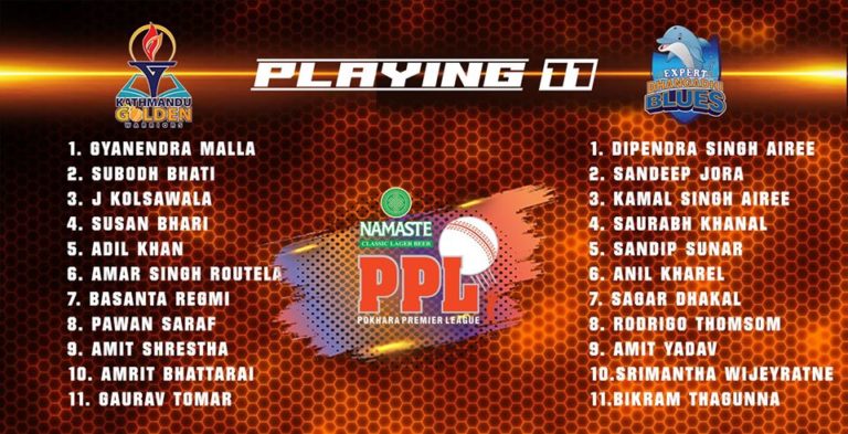 पोखरा —पोखरा प्रिमियर लिग (पीपीएल) अन्तर्गतको पहिलो खेलमा काठमाडौं गोल्डेन वारियर्सले एक्स्पर्ट धनगढी ब्लुजविरुद्ध खेल्दै