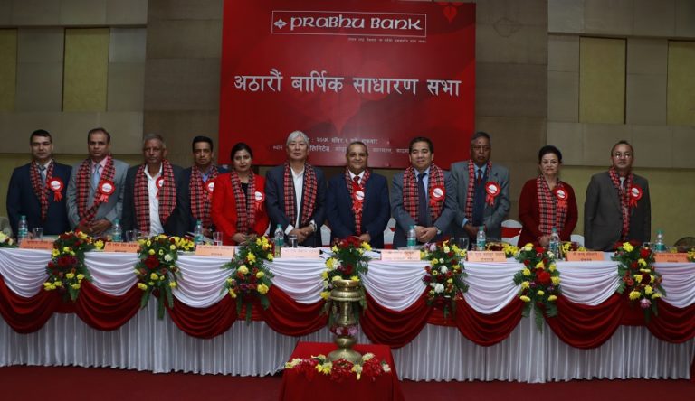 काठमाडौं- प्रभु बैंकको १८ औं वार्षिक साधारणसभाले सञ्चालक समितिले प्रस्ताव गरेको बोनस र प्रबन्ध पत्रमा