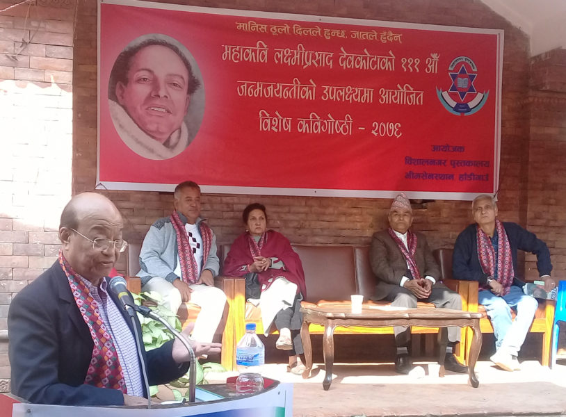 काठमाडौं- महाकवि लक्ष्मीप्रसाद देवकोटालाई सम्झँदै कवि, कवयत्री, कलाकार, पत्रकार, गायक र चलचित्रकर्मीहरुले शनिबार काठमाडौँमा विकृति,