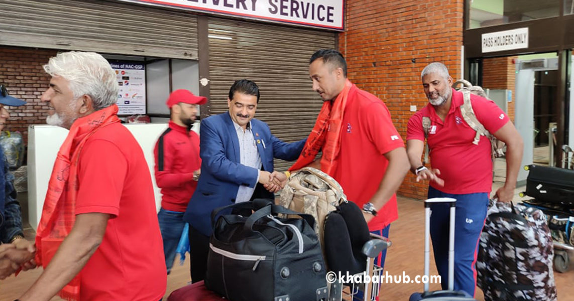 काठमाडौं– नेपाली राष्ट्रिय क्रिकेट टोली स्वदेश फर्किएको छ । ओमानमा ५ राष्ट्र सम्मिलित टी ट्वान्टी