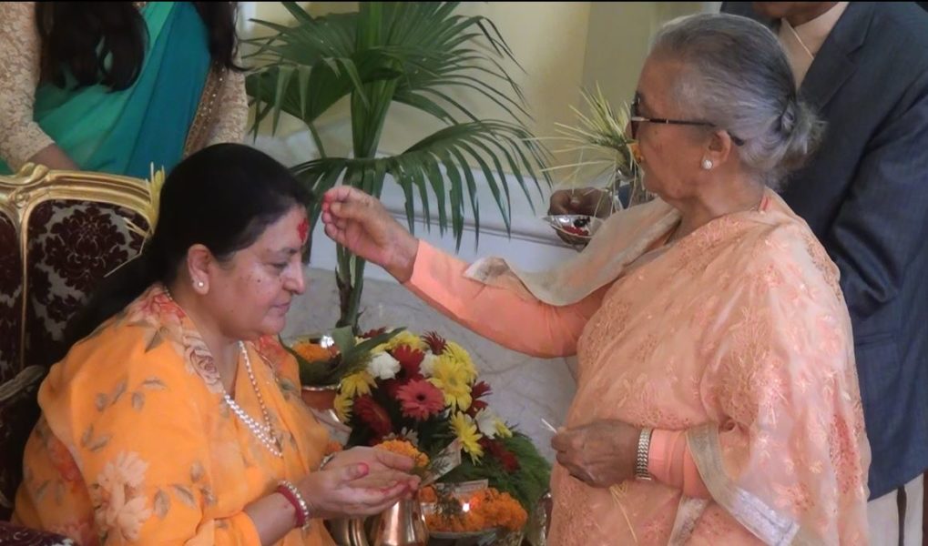 काठमाडौं– राष्ट्रपति विद्यादेवि भण्डारीले आफ्नी आमा मिथिला पाण्डेको हातबाट दशैँको टिका ग्रहण गरेकी छिन् ।