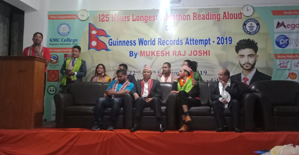 काठमाडौं– लगातार १सय२४ घण्टा ३० मिनेट किताब पढेर मुकेश जोशीले गिनिज बुक अफ वर्ल्ड रेकर्डमा