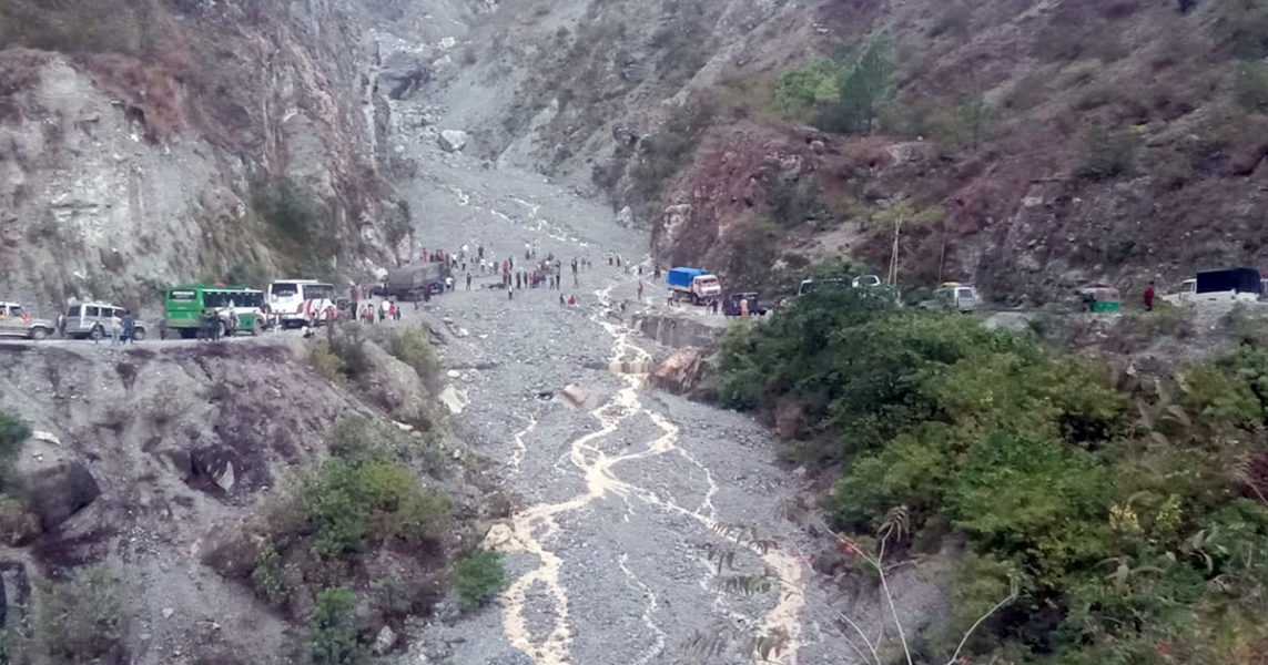 धादिङ– सडक माथिबाट खसेको पहिरो र लेदोका कारण मुग्लिन–नौबिसे (पृथ्वी राजमार्ग) अवरुद्ध भएको छ ।