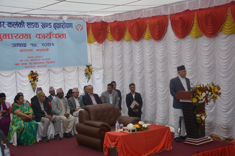 काठमाडौं-प्रधानमन्त्री केपी शर्मा ओलीले कोटेश्वर–कलङ्की सडक खण्डमा आज वृक्षरोपण गरेका छन् । राष्ट्रिय वृक्षरोपण दिवसका