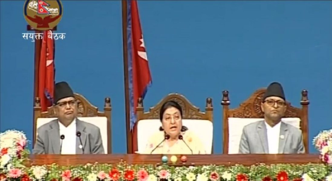 काठमाडौं– राष्ट्रपति विद्यादेवी भण्डारीले संसदमा पेश गरेको सरकारको आगामी आर्थिक वर्षको नीति तथा कार्यक्रम श्रम