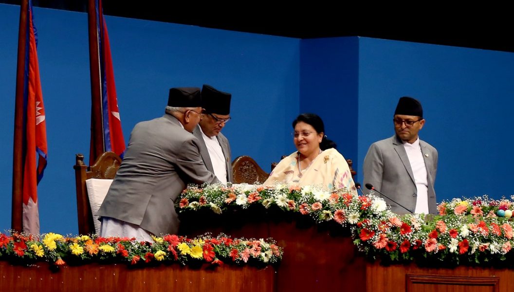 काठमाडौं– सरकाको नीति तथा कार्यक्रम प्रश्तुत गर्दा राष्ट्रपति विद्यादेवी भण्डारीले ‘मेरो सरकार’ भनेकोमा प्रमुख प्रतिपक्षी