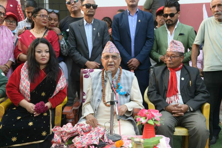 काठमाडौं– नेकपा एमालेका अध्यक्ष केपी शर्मा ओलीलाई मत माग्न झापा क्षेत्र नम्बर ५ मा गायिका