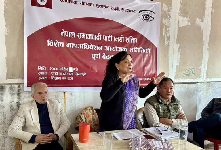 काठमाडौं– आइतबार हुने पार्टी एकताका विषयमा छलफल गर्न नेपाल समाजवादी पार्टी (नयाँ शक्ति) को विशेष