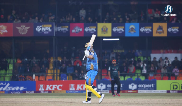 काठमाडौं- पोखरा एभेन्जर्सले दिएको विशाल लक्ष्य पछ्याउने क्रममा अर्धशतक प्रहार गरेका ब्याटर मार्क वाट आउट