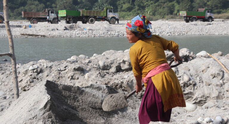 मलेखु– हातमा बेल्चा (साबेल), टाउकामा रुमाल र कम्मरमा सलको पटुकी । एकाबिहानै बालुवा सार्दै गरेको अवस्थामा भेटिइन्,