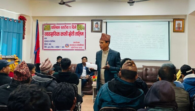 धुलिखेल– काभ्रेपलाञ्चोकको डाँडापारिस्थित महाभारत गाउँपालिकाका कफीखेती गर्दै आएका किसानहरूलाई व्यावसायिक कफीखेती प्रविधि तालिम प्रदान गरिएको