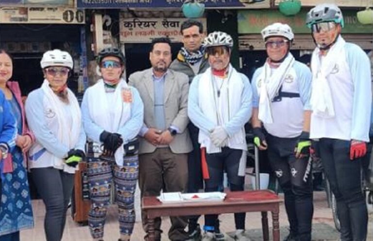 महोत्तरी– विश्व शान्ति र समृद्ध नेपालको नारासाथ साइकल यात्रा थालेका यात्री आज महोत्तरीको बर्दिबास आइपुगेका
