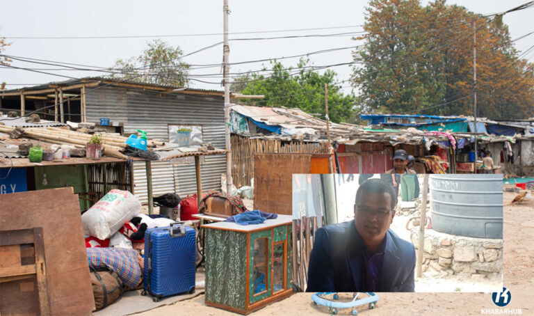 काठमाडौं– थापाथली सुकुम्बासी बस्तीमा काठमाडौं महानगरपालिकाको नगर प्रहरीले बस्ती खाली गराउन माइकिङ गरिरहेको छ ।