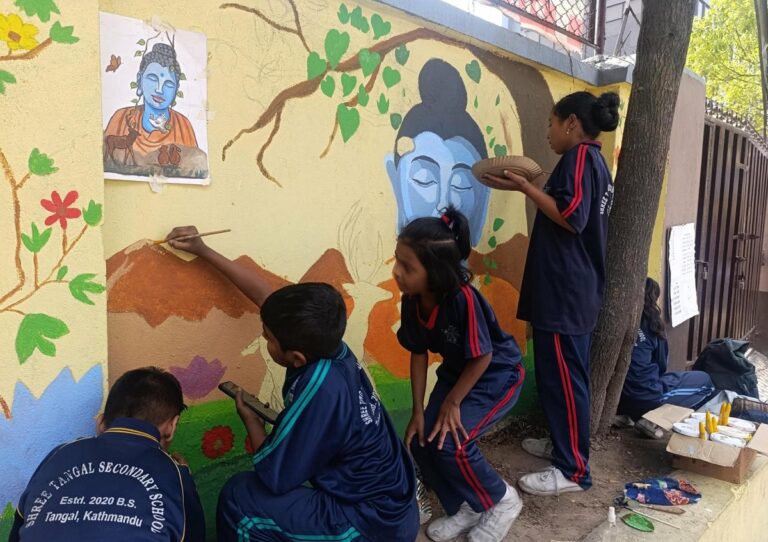 काठमाडौं– काठमाडौँ महानगरपालिका-७ चाबहिलस्थित मित्र आधारभूत विद्यालयका ३० विद्यार्थीले भित्तामा चित्र कोर्नेबारे सीप सिकिरहेका छन्