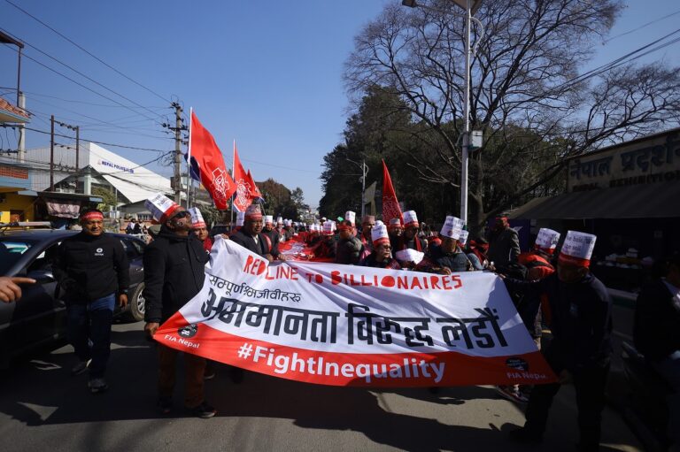 काठमाडौं– श्रमजीवीमाथि हुने गरेको अन्याय–अत्याचारविरुद्ध काठमाडौँमा रातो घेरा कोरौँ भन्ने नारासहित र्यालीको आयोजना गरिएको छ