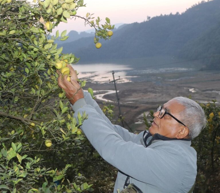 गण्डकी– भिरालो पाखोमा झाडी फाँडेर गरिएको कागती खेती एकजना कृषकका लागि राम्रो आम्दानीको श्रोत बनेको