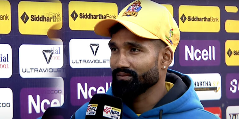 काठमाडौं– नेपाल प्रिमियर लिग (एनपीएल)को फाइनलमा जनकपुर बोल्ट्ससँग हारेपछि सुदूरपश्चिम रोयल्सका कप्तान दीपेन्द्रसिंह ऐरीले बलिङको