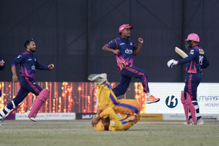 काठमाडौं– नेपाल प्रिमियर लिग (एनपीएल) को फाइनल खेलमा जनकपुर बोल्ट्सले ६ ओभरमा पहिलो विकेट गुमाएको