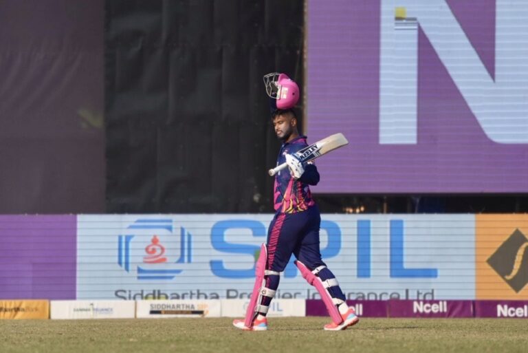 काठमाडौं– नेपाल प्रिमियर लिग अन्तरगर्तको फाइनल खेलमा सुदूरपश्चिम रोयल्सविरुद्ध जनकपुरका बोल्ट्सका लाहिरु मिलन्थाले अर्ध शतक