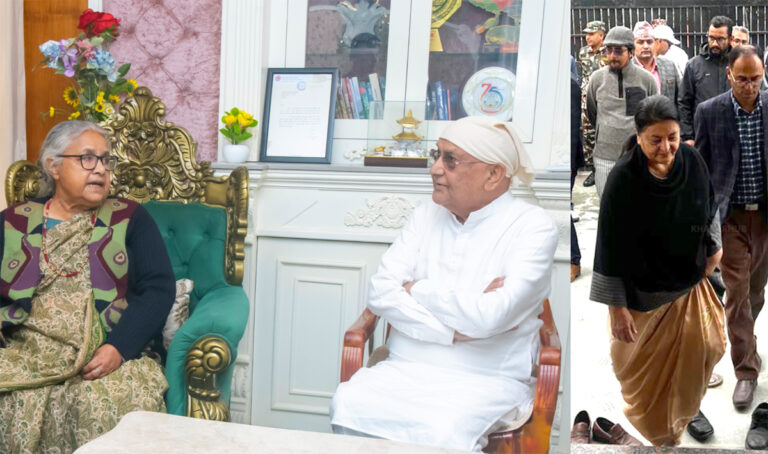 काठमाडौं- पितृशोकमा रहेका नेकपा अध्यक्ष केपी शर्मा ओलीलाई भेट्न पूर्वराष्ट्रपति विद्यादेवी भण्डारी र प्रधानमन्त्री सुशीला कार्कीले