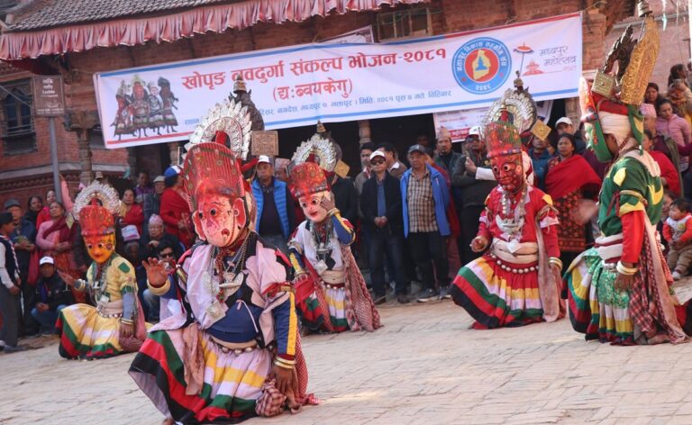 भक्तपुर – मध्यपुरथिमि नगरपालिका–७ नगदेशस्थित गणेश मन्दिर प्राङ्गणमा विभिन्न नवदुर्गा नाचिरहेका छन् । सयौँको सङ्ख्यामा